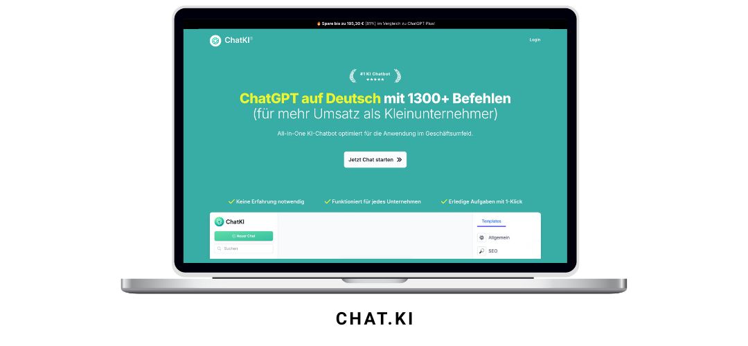 ChatKI ist dein AI-Chatbot für den deutschsprachigen Markt mit über 1.300 integrierten Befehlen speziell für Kleinunternehmer. Mit ChatGPT auf Deutsch hilft ChatKI dabei, Aufgaben zu automatisieren, Marketing- und Vertriebsprozesse zu optimieren und Umsatz zu steigern. Die benutzerfreundliche Oberfläche macht KI-Technologie auch für Einsteiger zugänglich – ganz ohne Vorerfahrung. ChatKI legt großen Wert auf Datenschutz und wird in Deutschland gehostet, um höchste Sicherheitsstandards zu gewährleisten.