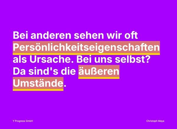 Bei anderen: Wir sehen oft Persönlichkeitseigenschaften als Ursache Bei uns selbst: Da sind es die äußeren Umstände