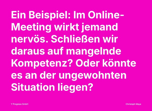 Im Online-Meeting wirkt jemand nervös und unsicher. Schließen wir daraus auf mangelnde Kompetenz? Oder könnte es an der ungewohnten Situation, technischen Problemen oder der Unsicherheit mit der neuen Software liegen?