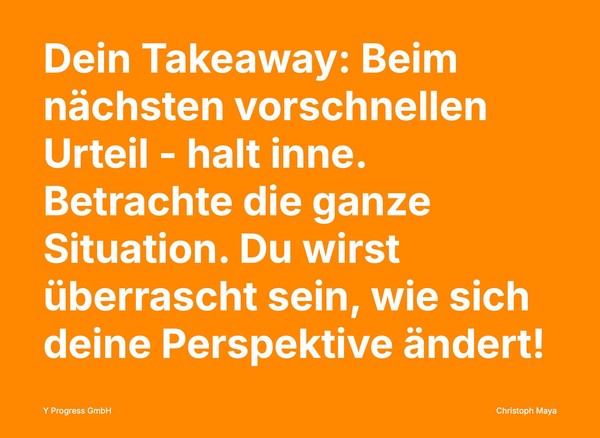 Beim nächsten vorschnellen Urteil – halt inne. Betrachte die ganze Situation. Du wirst überrascht sein, wie sich deine Perspektive ändert!