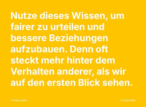Denn oft steckt mehr hinter dem Verhalten anderer, als wir auf den ersten Blick sehen. Mit diesem Bewusstsein kannst du nicht nur andere besser verstehen, sondern auch selbst fairer beurteilt werden.
