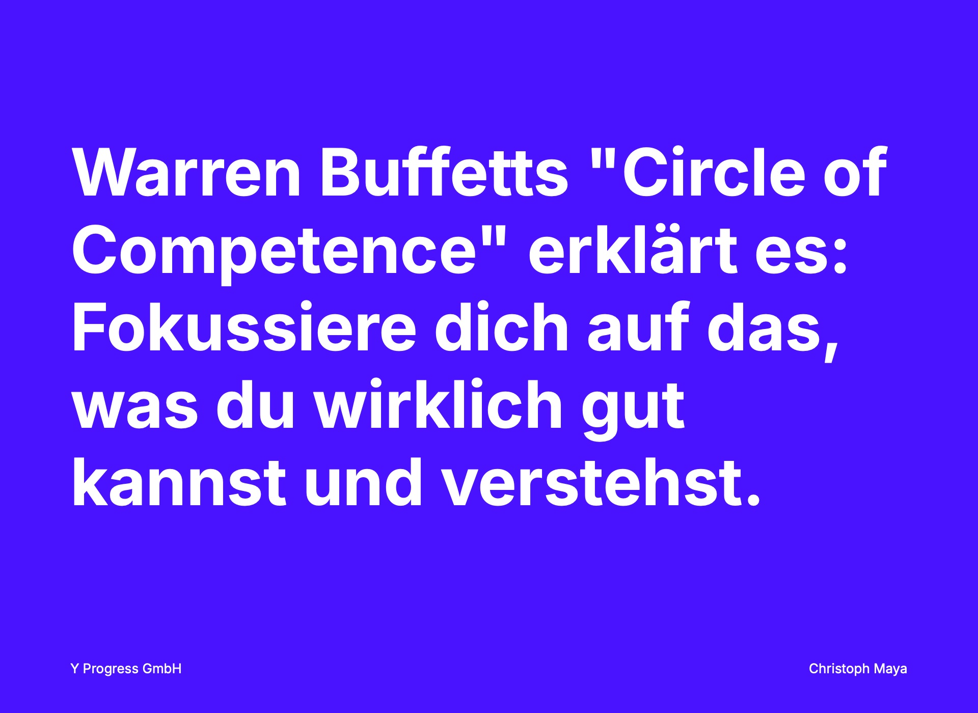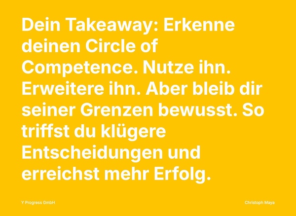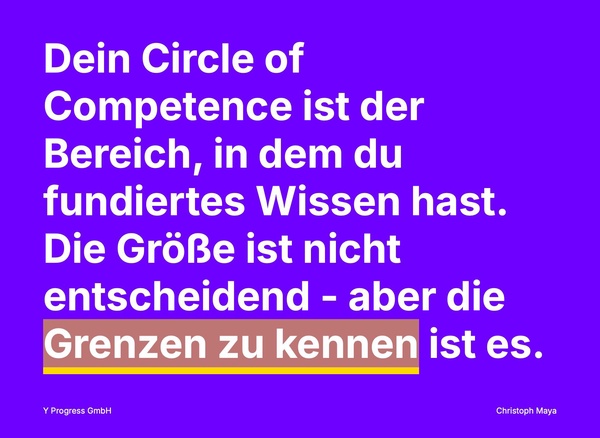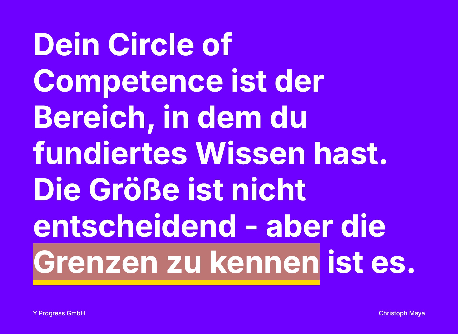 Erkenne deinen Circle of Competence. Nutze ihn. Erweitere ihn. Aber bleib dir seiner Grenzen bewusst.