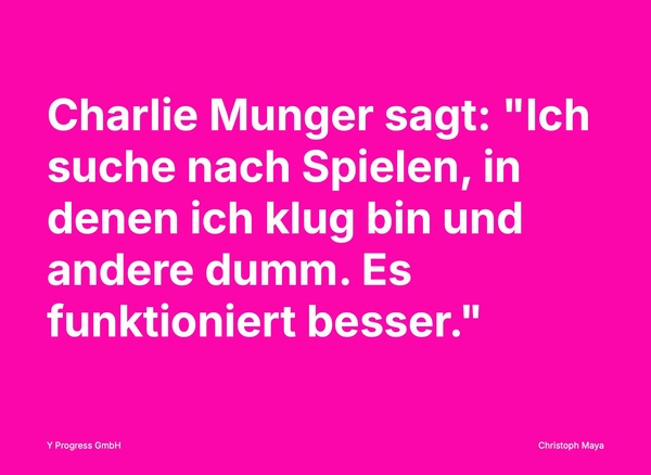 Charlie Munger, Buffetts langjähriger Partner, bringt es auf den Punkt: “Ich suche nach Spielen, in denen ich klug bin und andere dumm. Es funktioniert besser.”