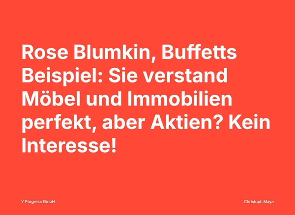 Rose Blumkin verstand Möbel und Immobilien perfekt. Sie hatte ein unglaublich tiefes Wissen in diesen Bereichen und baute ein erfolgreiches Unternehmen auf. Aber Aktien? Kein Interesse.