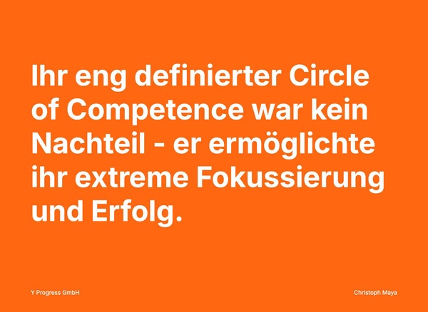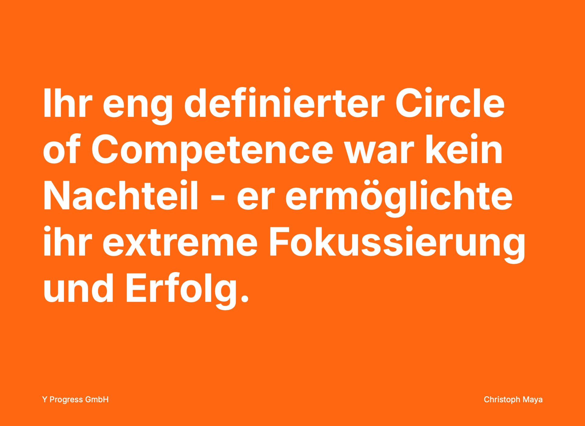 Ihr eng definierter Kompetenzkreis war kein Nachteil – im Gegenteil. Er ermöglichte ihr extreme Fokussierung und außergewöhnlichen Erfolg in ihrem Bereich.