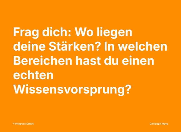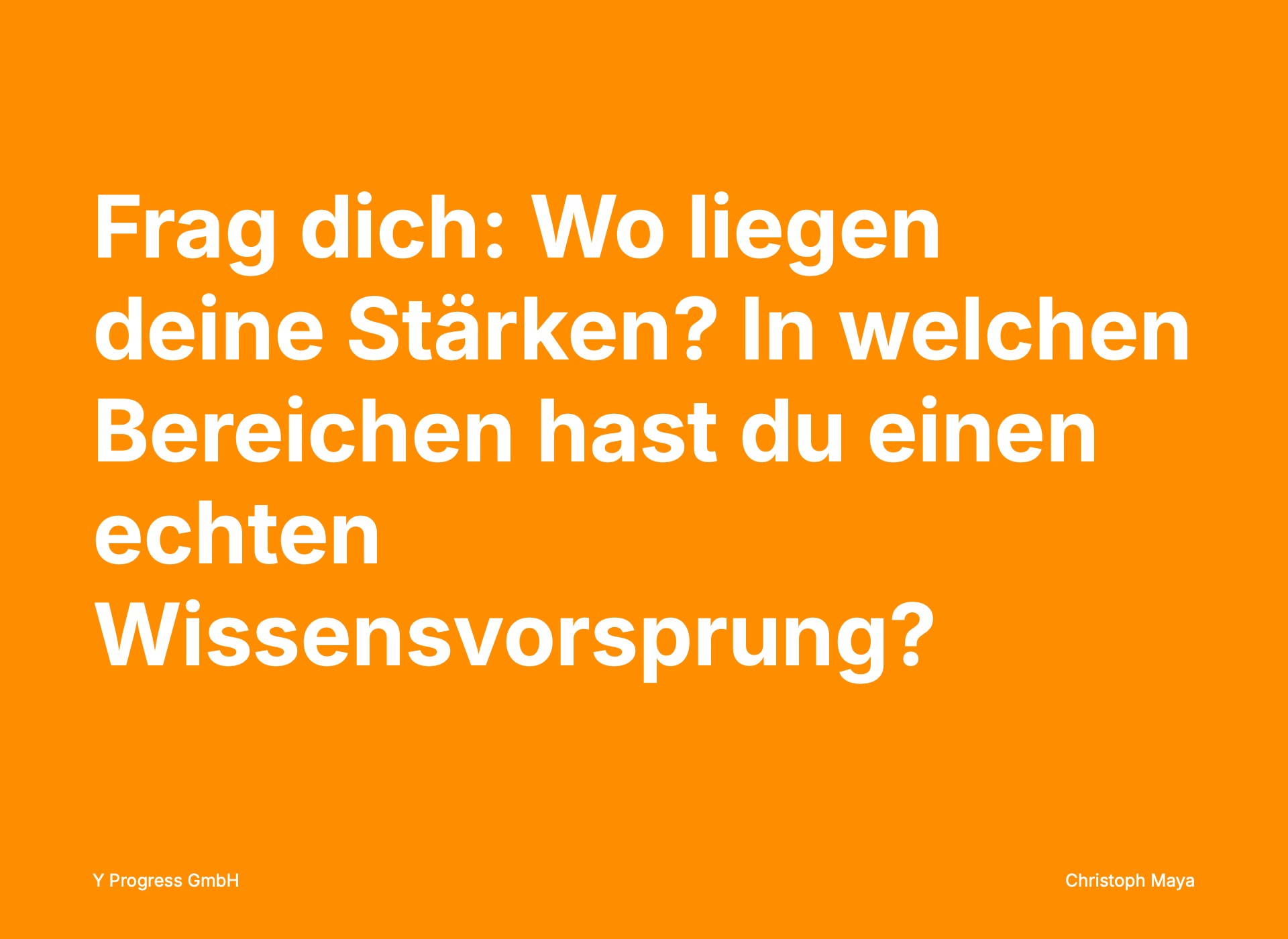 Die entscheidende Frage ist: Wo liegen deine Stärken? In welchen Bereichen hast du einen echten Wissensvorsprung?
